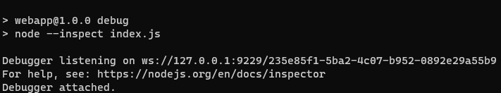 As I'm writing this the current Node version is 16.13. Debugging in NodeJS is a good trick to know how to do when you’re a web developer. It is done by adding simply -- inspect flag. What happens is that when using -- inspect flag Node opens a port to accept WebSocket connections. Now you will be presented with the following: